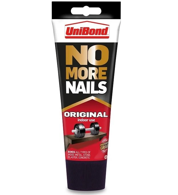 No More Nails will bond all types of wood, metal, stone, plaster and concrete. The strong instant grab adhesion makes it ideal for fixing skirting boards, coving, polystyrene mouldings, window ledges, coat hooks and many other internal bonding applications.